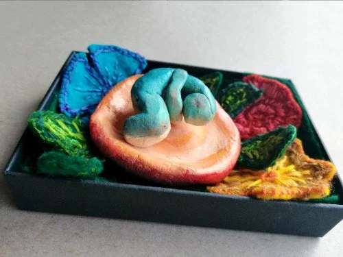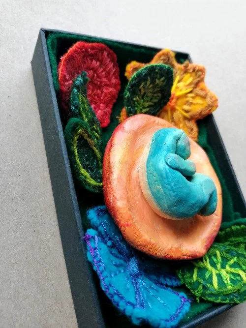 [NL] Ik wil niet alleen maar illustraties blijven maken, dus voor iets anders heb ik ook deze mixed media sculptuur gemaakt, het heet Mothers Warmth ( Moeders Warmte) om visueel te laten zien hoe ik me wel eens voel nu mijn moeder overleden is.