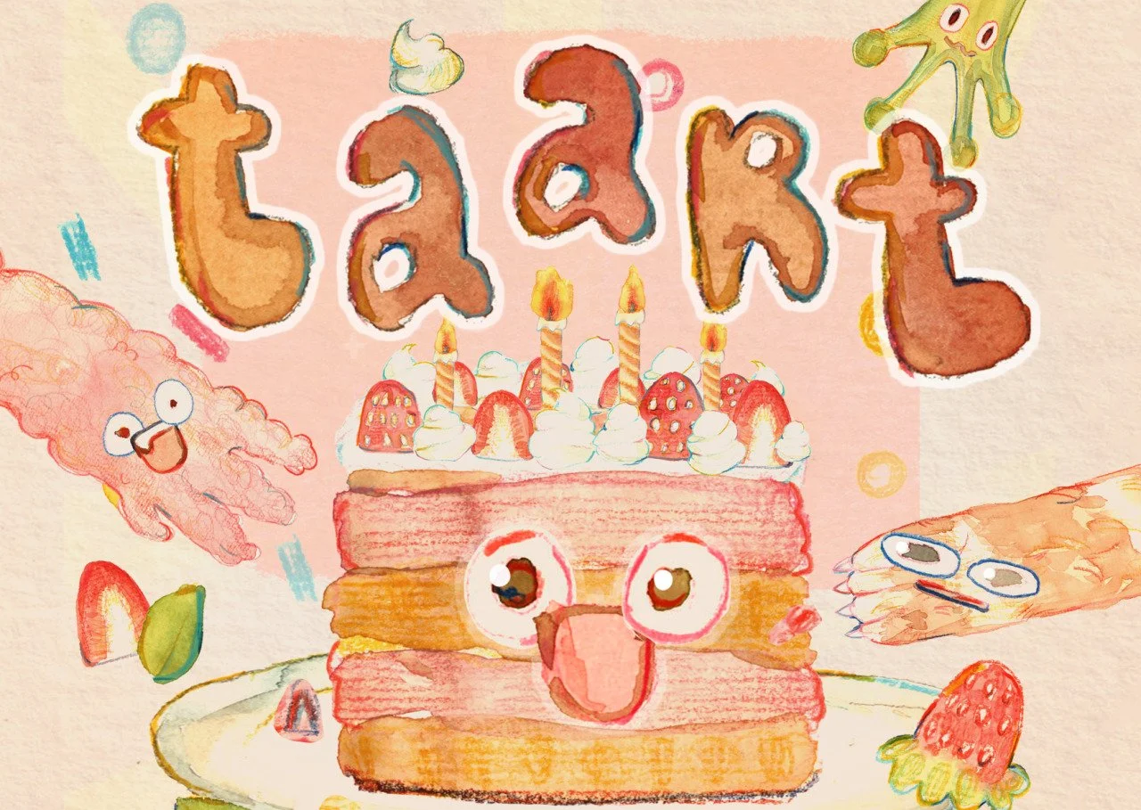 Taart (translation: ‘strawberry’ cake/pie) is made with visuals made from watercolor pieces. Each part is hand-painted, scanned, and then cleaned up digitally!